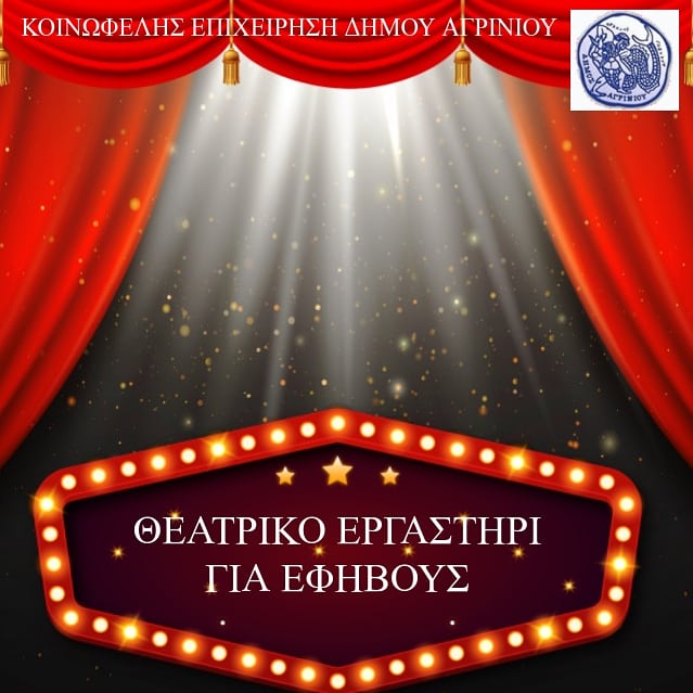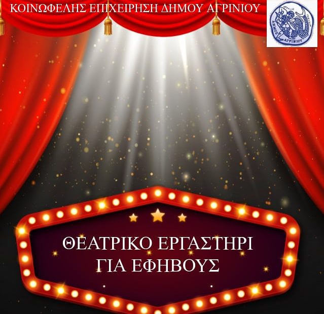Το θεατρικό εργαστήρι για εφήβους της Κοινωφελούς Επιχείρησης Δήμου Αγρινίου ανοίγει την αυλαία του την Πέμπτη 1 Οκτωβρίου, στη Φαντασία και ώρες 19:00-21:00. Δασκάλα του τμήματος είναι η θεατρολόγος Μαρίνα Καραφά.