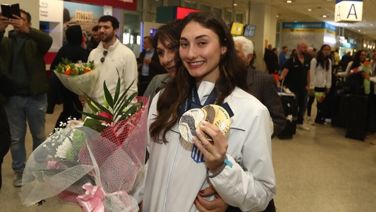 Θερμή υποδοχή επιφύλαξαν φίλοι της καλλιτεχνικής κολύμβησης και συγγενείς στην παγκόσμια πρωταθλήτρια Ευαγγελία Πλατανιώτη στο αεροδρόμιο Ελευθέριος Βενιζέλος, κατά την άφιξή της από τη Ντόχα. Το «χρυσό» κορίτσι του ελληνικού αθλητισμού με τα δύο μετάλλια στο στήθος μίλησε στην κάμερα της ΕΡΤ για τους στόχους της.
