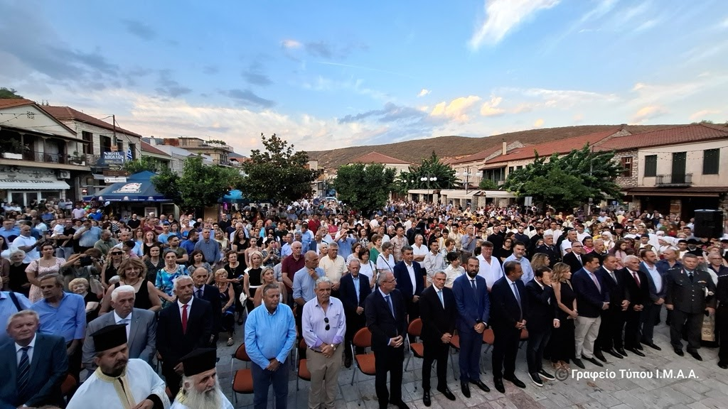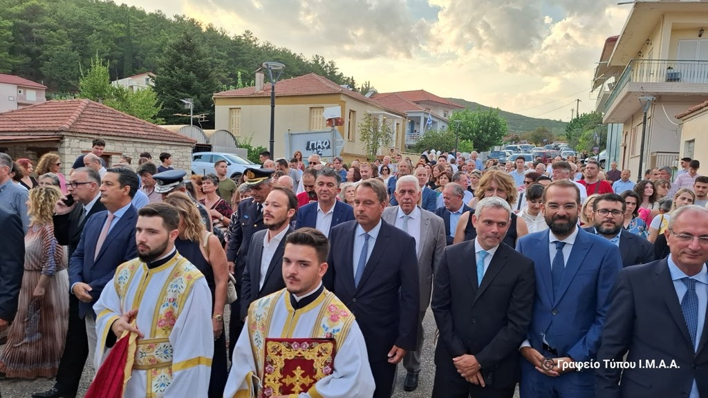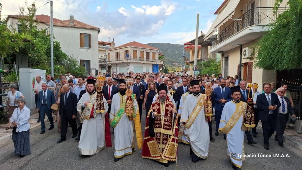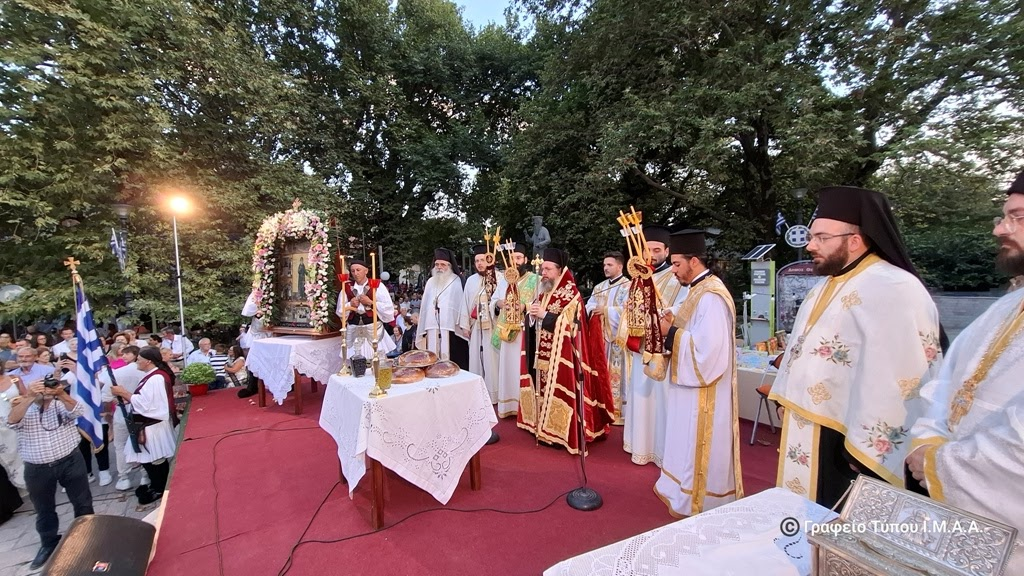 Υπό τους ήχους της Φιλαρμονικής του Δήμου Αγρινίου ξεκίνησε η λιτανευτική πομπή με κατεύθυνση τον Ιερό Ναό Κοιμήσεως της Θεοτόκου, ενώ προηγουμένως, στην κεντρική πλατεία τελέσθηκε η αρτοκλασία και μίλησε στους πιστούς ο Σεβασμιώτατος.