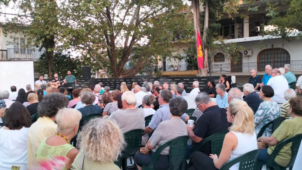 Μετά την ομιλία ακολούθησε μουσικό αφιέρωμα, από τους Θωμά Γκουρνέλο, Ηλία Στεφανίδη και Ανδρέα Φούκα, ενώ η εκδήλωση έκλεισε με την προβολή της ταινίας του Λεωνίδα Βαρδαρού, «Γυναίκες μαχήτριες – Μέρος Β’ 1944 – 1960».