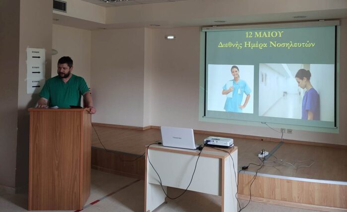 Τιμήθηκε η παγκόσμια ημέρα Νοσηλευτών σήμερα στο Νοσοκομείο μας με μια όμορφη γιορτή με ομιλητές τον ιατρό κ. Φασούλα και μέλους του ΔΣ την ΔΝΥ και απεύθυνε χαιρετισμό η Διοικητρια. Το μήνυμα του Διεθνούς Συμβουλίου Νοσηλευτών φέτος είναι ΟΙ ΝΟΣΗΛΕΥΤΈΣ ΜΑΣ ΤΟ ΜΕΛΛΟΝ ΜΑΣ ευχαριστούμε για την οργάνωση το Σωματείο εργαζομένων