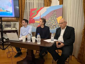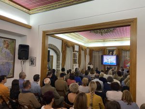 Χαιρετισμούς απηύθυναν ο Δήμαρχος Ναυπακτίας κ.Βασίλης Γκίζας και ο Πρόεδρος των Εκπαιδευτηρίων και της Αιτωλικής Αναπτυξιακής ΑΕ ΟΤΑ κ.Γιώργος Κοτρώνης. Για τον καλλιτέχνη μίλησαν ο Διευθυντής της Παπαχαραλαμπείου Δημόσιας Κεντρικής Βιβλιοθήκης Ναυπάκτου κ.Γιάννης Χαλάτσης και ο Επιστημονικός Συνεργάτης των Εκπαιδευτηρίων κ.Δημήτρης Σιούτης.