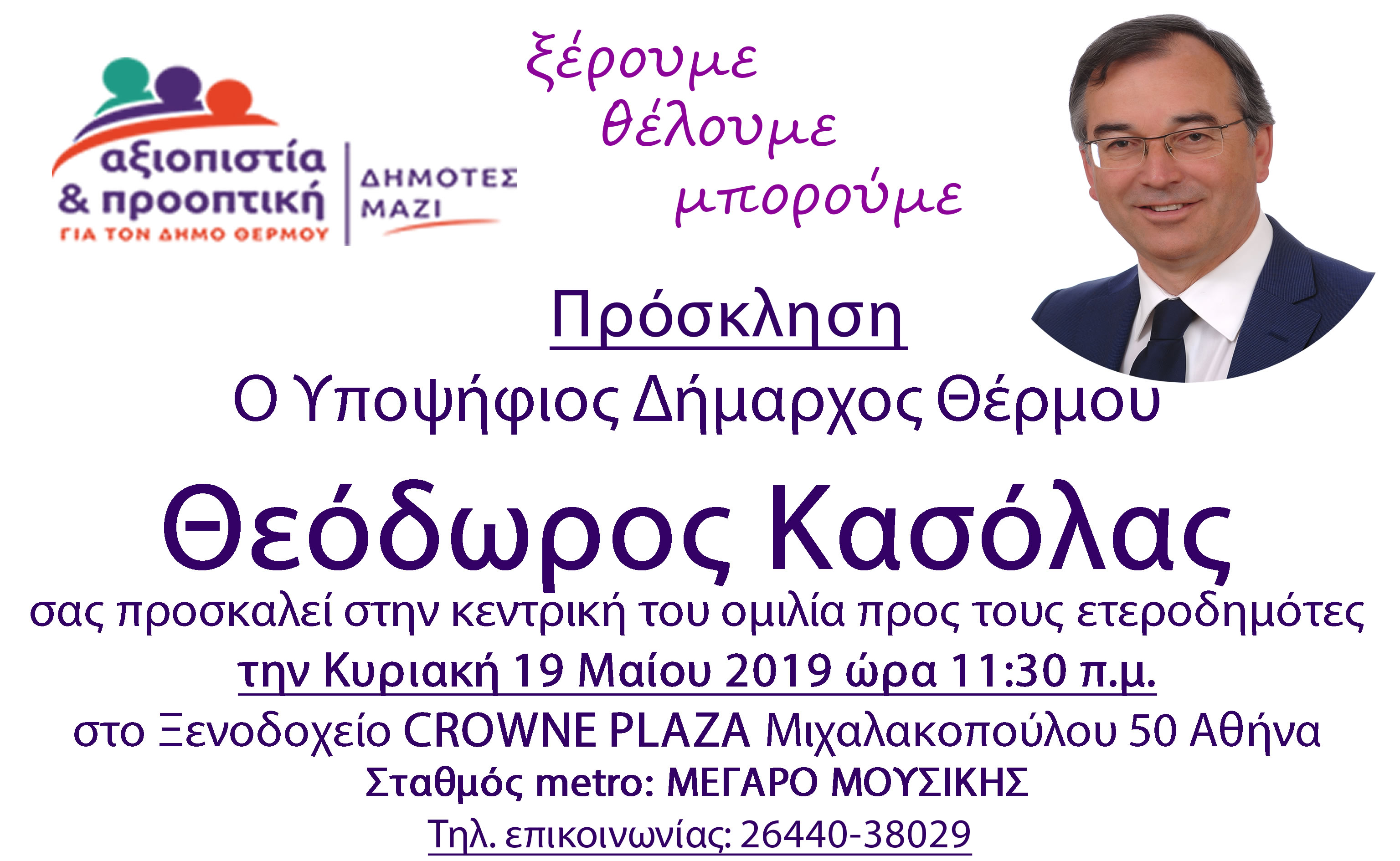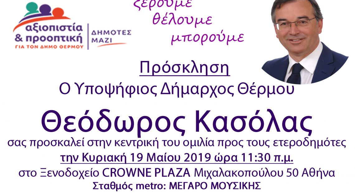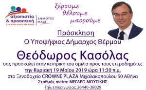 Την Κυριακή η ομιλία του Θ.Κασόλα στους ετεροδημότες της Αθήνας