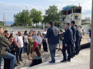 Ο Γιώργος Παπαναστασίου μαζί με τους Αντιδημάρχους Μίμη Σκορδόπουλο και Βασίλη Φωτάκη ξενάγησαν τον Διευθυντή του 5ου ΓΕΛ Φώτη Λαζαρίνη και τους μαθητές στο υψηλών προδιαγραφών κτίριο και εξήγησαν ότι η κατασκευή του προβλέπει εγκατάσταση φωτοβολταϊκών πάνελ που εξασφαλίζουν ενεργειακή αυτονομία, εξωτερική θερμομόνωση, στέγη με φυτεμένο δώμα, φωτιστικά νέας τεχνολογίας, γήπεδα άθλησης, ράμπες εισόδου, θέσεις στάθμευσης και χώρους πρασίνου.