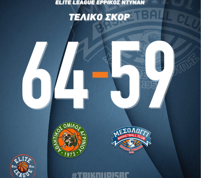 Στο γειτονικό ντέρμπι, το Αγρίνιο πανηγύρισε τη νίκη, επικρατώντας του Χαρίλαου Τρικούπη με 64-59.