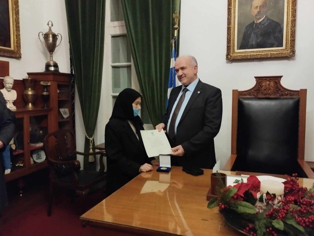 Ο Δήμαρχος Κώστας Λύρος απένειμε στην Αθηνά Παπαχρήστου το «Χρυσό Μετάλλιο» ως ένδειξη αναγνώρισης της προσφοράς της και ειδικότερα την αξιέπαινη δωρεά ενός υπερσύγχρονου ασθενοφόρου προς τον τομέα ΕΚΑΒ του Νοσοκομείου Μεσολογγίου.
