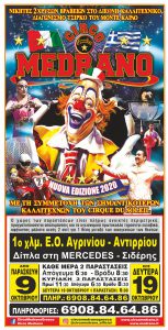 Το διάσημο CIRCO MEDRANO το τσίρκο των πιο όμορφων αναμνήσεών μας συνεχίζει αδιάλειπτα την περιοδεία του στην Ελλάδα με κομβικό σταθμό την παρουσία του στην 84η (Σεπτέμβρης 2019) Διεθνή Έκθεση Θεσσαλονίκης, την Αθήνα κατά το χειμώνα 2019-2020, και την σταθερή παραμονή του καθ’όλη την διάρκεια της καραντίνας στην Ελλάδα, επανεκκινεί τις παραστάσεις του. Μετά τις επιτυχημένες παραστάσεις στην Πάτρα και τη Ναύπακτο επόμενος σταθμός το Αγρίνιο από την Παρασκευή 09.10 έως την Δευτέρα 19 Οκτωβρίου, στο 1ο χλμ Εθνικής Οδού Αγρινίου – Αντιρίου, δίπλα στη Mercedes – Σιδέρης με 2 καθημερινές παραστάσεις στις 18:30 και 20:30 και την Κυριακή με 3 παραστάσεις 11.30 – 18.30 και 20.30, ενώ τη Δευτέρα 19/10 θα πραγματοποιηθεί μόνο μία παράσταση στις 18.30.