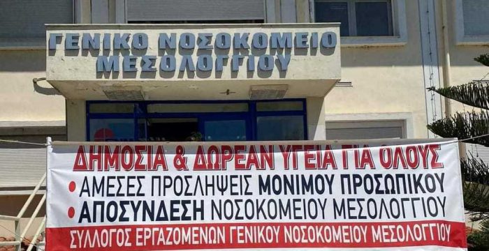Τα οξυμένα προβλήματα του Νοσοκομείου Μεσολογγίου, η υποστελέχωσή του, καθώς και οι τελευταίες εξελίξεις παραιτήσεων ιατρών στην παθολογική κλινική γεγονός που οδηγεί σχεδόν όλα τα τμήματα του νοσοκομείου να βρίσκονται σε λειτουργική κατάρρευση, μας καλούν σε αγωνιστικό παρών.