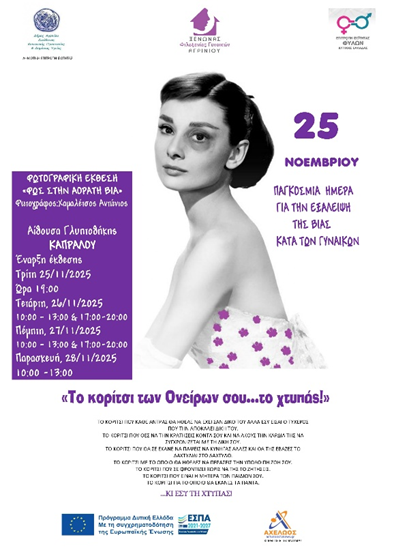 Η Διεύθυνση Κοινωνικής Προστασίας &Δημόσιας Υγείας, ο Ξενώνας Φιλοξενίας Γυναικών Θυμάτων βίας και των παιδιών αυτών και η Δημοτική Επιτροπή Ισότητας του Δήμου Αγρινίου , με αφορμή  την 25η Νοεμβρίου, Παγκόσμια Ημέρα Εξάλειψης της Βίας Κατά των Γυναικών, θα πραγματοποιήσουν σειρά δράσεων ενημέρωσης κι ευαισθητοποίησης του κοινού για την εξάλειψη της έμφυλης βίας και την προαγωγή της ισότητας των δύο φύλων, με θέμα: