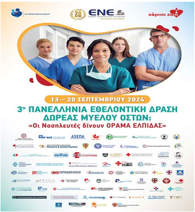 Η Διεύθυνση Νοσηλευτικής Υπηρεσίας του Γ.Ν. Αιτωλοακαρνανίας – Ν.Μ. Αγρινίου, συμμετέχει στην 3η Πανελλήνια Εθελοντική Δράση Δωρεάς Μυελού Οστών, την οποία διοργανώνει η Ένωση Νοσηλευτών Ελλάδας σε συνεργασία με το Σύλλογο «ΟΡΑΜΑ ΕΛΠΙΔΑΣ».