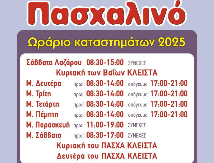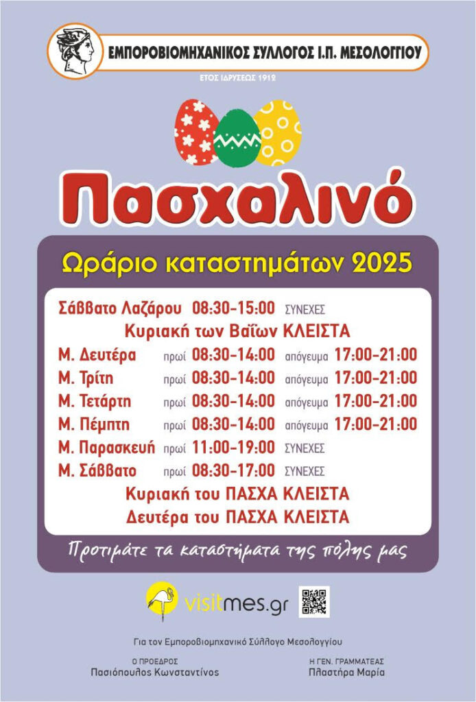 Το πασχαλινό ωράριο των καταστημάτων του Μεσολογγίου