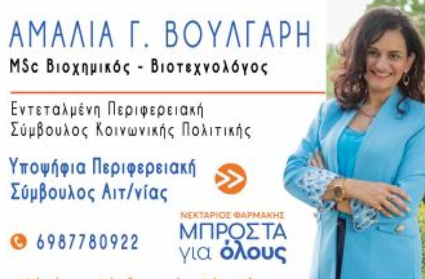Η Αμαλία Βούλγαρη Πολονύφη είναι μια γυναίκα δραστήρια με δυναμισμό, εκλεγμένη με τον Νεκτάριο Φαρμάκη στην  Περιφέρεια Δυτικής Ελλάδας και εκ νέου υποψήφια.