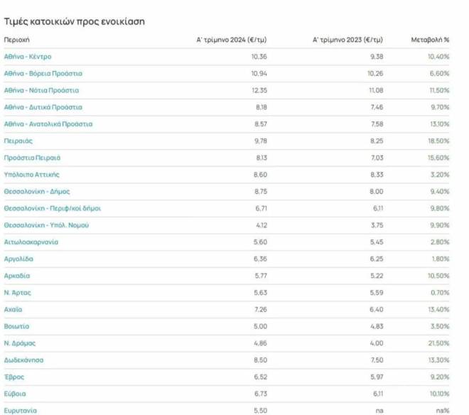 Η μεγαλύτερη αύξηση το α’ τρίμηνο του 2024 στις τιμές ενοικίων εντοπίζεται στις Σέρρες με +24,60% και ακολουθούν η Δράμα με +21,50% και η Ξάνθη με +20%.