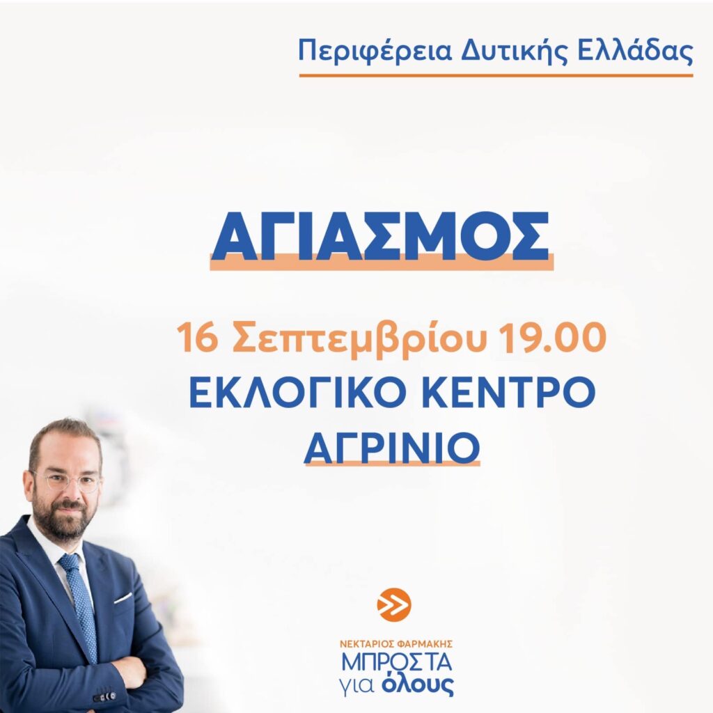 Σάββατο 16 Σεπτεμβρίου 2023 έναρξη λειτουργίας και αγιασμός στο εκλογικό μας κέντρο του Νεκτάριου Φαρμάκη στο Αγρίνιο , οδός Πλατεία Δημοκρατίας 6.