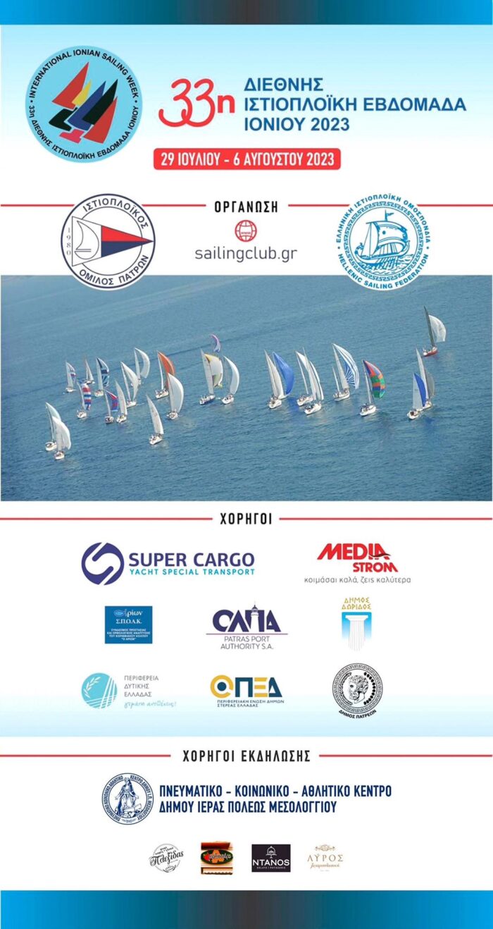 Το Σάββατο 2 Αυγούστου ο στόλος της 33ης  Διεθνούς Ιστιοπλοϊκής Εβδομάδας Ιονίου θα καταπλεύσει στο λιμάνι Μεσολογγίου.
