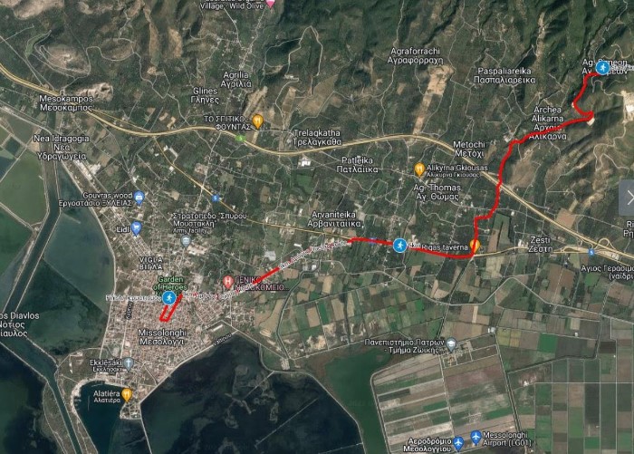 Ακολουθεί τη διαδρομή που ακολούθησαν οι Ελεύθεροι Πολιορκημένοι κατά την «Εξοδο» για να φτάσουν στην Ιερά μονή Αγίου Συμεώνος. Μια ιστορική ανάμνηση που επιβιώνει μέσα από αυτή τη διαδρομή, ήταν το μονοπάτι που βάδισαν οι ελάχιστοι επιζήσαντες Αγωνιστές .