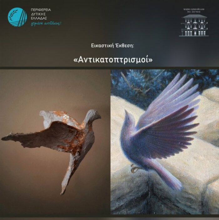 Ο Περιφερειάρχης Δυτικής Ελλάδας, Νεκτάριος Φαρμάκης και ο Αντιπεριφερειάρχης Πολιτισμού και Τουρισμού, Νικόλαος Κοροβέσης, σας προσκαλούν στα εγκαίνια της εικαστικής έκθεσης του Λάμπρου Κατσαντώνη και της Ίνας Καραγεώργου με τίτλο «Αντικατοπτρισμοί» που θα πραγματοποιηθεί το Σάββατο 27 Μαΐου 2023 και ώρα 20:00 στο Κτίριο Χρυσόγελου, Ιεράς Πόλις Μεσολογγίου.