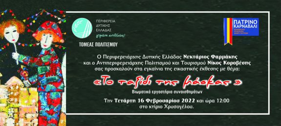 Tην πρωτότυπη εικαστική έκθεση με τίτλο «Το ταξίδι της μάσκας», πρόκειται να εγκαινιάσει Ο Αντιπεριφερειάρχης Πολιτισμού και Τουρισμού Νικόλαος Κοροβέσης, την Τετάρτη 16 Φεβρουαρίου 2022, στις 12 το μεσημέρι στο Κτίριο Χρυσόγελου, στο Μεσολόγγι. Η έκθεση που μυεί τους επισκέπτες στο πνεύμα του Πατρινού Καρναβαλιού και της μακρόχρονης ιστορίας του, πραγματοποιείται σε συνεργασία με την Κοινωφελή Επιχείρηση Δήμου Πατρεων «Καρναβάλι Πάτρας» .