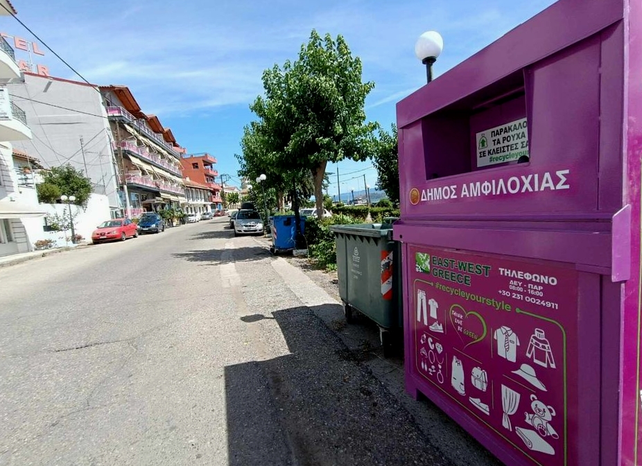 Ο Δήμος Αμφιλοχίας αξιοποιώντας το πρόγραμμα διαχείρισης κλωστοϋφαντουργικών προϊόντων (συλλογή, μεταφορά και διάθεση) της εταιρείας EAST WEST GREECE, προχώρησε στην τοποθέτηση των πρώτων κάδων ανακύκλωσης ενδυμάτων και υποδημάτων σε κεντρικά σημεία του Δήμου.
