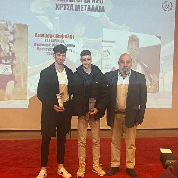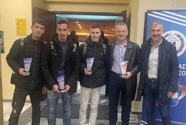 Ανάμεσα τους οι Αγρινιώτες πρωταθλητές Κωνσταντίνος Σταμούλης, Νικόλαος Σταμούλης και Διονύσης Καψάλης καθώς και τον προπονητή τους Μπάμπη Ποσονίδη