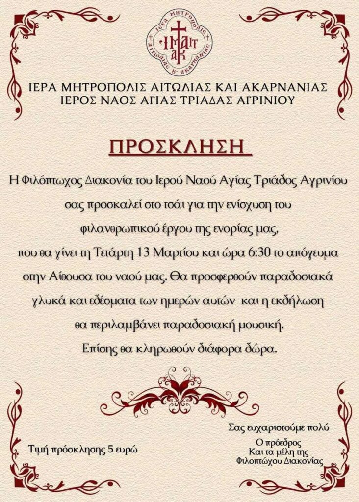 Τσάι για την ενίσχυση του φιλανθρωπικού έργου της ενορίας Αγίας Τριάδας Αγρινίου