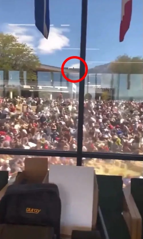 Άλλη λήψη από τον χώρο, λίγο πριν από τον πυροβολισμό, φαίνεται να δείχνει έναν άνθρωπο ξαπλωμένο σε θέση ελεύθερου σκοπευτή στην ταράτσα, στο σημείο όπου εκδηλώθηκε η επίθεση, ενώ παρευρισκόμενοι απορούσαν τι ακριβώς βλέπουν.