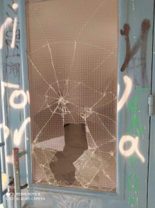 Από τις τελευταίες φθορές που έγιναν εδώ και 10 μέρες, δεν έχει γίνει καμία παρέμβαση από τις τεχνικές υπηρεσίες του Δήμου και το Σχολείο εξακολουθεί να είναι εκτεθειμένο στην παραβατική συμπεριφορά αυτών των ατόμων.
