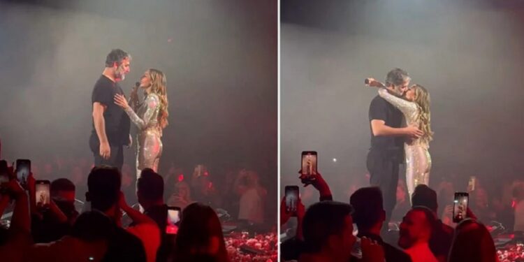 Δευτερόλεπτα μετά την αφιέρωση, το ζευγάρι αντάλλαξε ένα μεγάλο φιλί στην πίστα, την ίδια ώρα που πανέρια με τα γαρύφαλλα έπεφταν πάνω τους. Κατά τη διάρκεια της τρυφερής στιγμής ανάμεσά τους, μερικοί από τους θαμώνες χειροκροτούσαν, άλλοι έβγαλαν τα κινητά τους για να απαθανατίσουν τη στιγμή και άλλοι τους πέταγαν λουλούδια.
