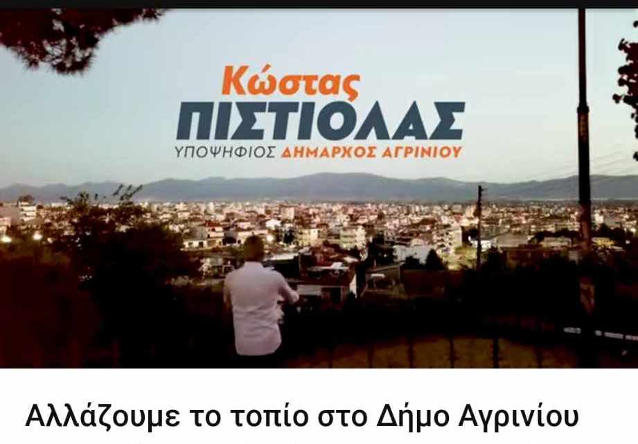 Με βίντεο, ένα ακόμη βήμα μπροστά για την ανακοίνωση του Κώστα Πιστιόλα Η επίσημη ανακοίνωση της υποψηφιότητας του Κώστα Πιστιόλα για τον Δημο Αγρινίου θα γίνει στις 8 Αυγούστου στις 8 το απόγευμα. Σήμερα με βίντεο που δημοσιοποιήθηκε γίνεται ένα ακόμη βήμα προς την ανακοίνωση της υποψηφιότητάς του, μιας και εμφανίζεται και ο ίδιος στο βίντεο ενώ στο τέλος παρουσιάζεται για πρώτη φορά και επισήμως ως διεκδικητής ενώ συνοδεύεται από τον τίτλο «Αλλάζουμε το τοπίο στο δήμο Αγρινίου .