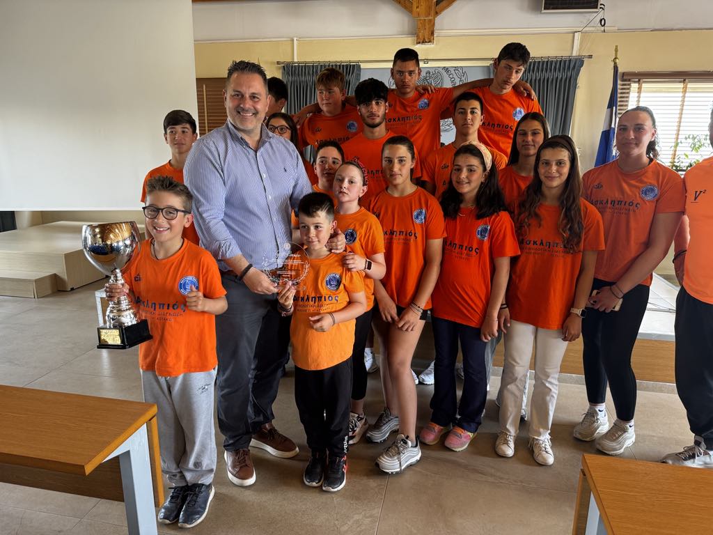 Συνομιλώντας με τους μικρούς αθλητές, ο Δήμαρχος κ. Διαμαντόπουλος τους συνεχάρη για την κορυφαία θέση που κατέκτησαν με 44,5 βαθμούς στο Πανελλήνιο Πρωτάθλημα, και τους ευχήθηκε να έχουν πετυχημένη πορεία στον αθλητισμό, δίχως όμως να παραμελούν τα μαθητικά τους καθήκοντα, ενώ τους παρέδωσε αναμνηστικό βραβείο και δήλωσε πως ο Δήμος θα βρίσκεται πάντα στο πλάι του και θα στηρίζει τον Ναυτικό Όμιλο στις ανάγκες του.