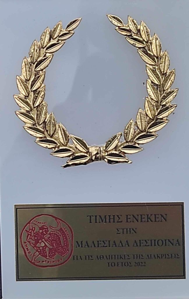 Το απόγευμα του Σαββάτου στο ΔΑΚ Αγρινίου μετά τα αποκαλυπτήρια της προτομής του σπουδαίου μαραθωνοδρόμου Μιχάλη Κούση, ακολούθησε η Γιορτή του Αθλητή, όπου ανάμεσα στους αθλητές και τις αθλήτριες της πόλης μας βραβεύτηκε και η αθλήτρια του τμήματος ελληνορωμαϊκής πάλης του Παναιτωλικού Δέσποινα Μαλεσιάδα, η οποία είχε κατακτήσει το αργυρό μετάλλιο στο Πανελλήνιο Πρωτάθλημα Πάλης Παγκορασίδων U15 τον Μάϊο του 2022 στα Τρίκαλα