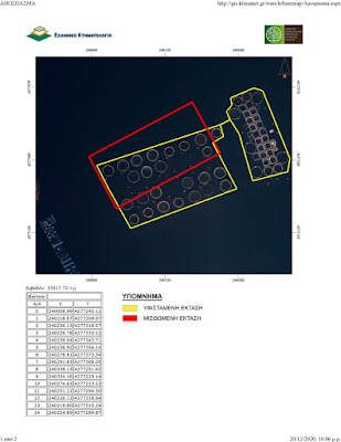 Εν προκειμένω, στα πλαίσια της έρευνας που αρχίσαμε με την συνδρομή μηχανικών μελών του ΤΕΕ, νομικών, αλιέων και κατοίκων της περιοχής μας με αφορμή το Σχέδιο ίδρυσης ΠΟΑΥ περιοχής Εχινάδων νήσων – Αιτωλ/ρνανίας, διαπιστώσαμε ότι στην περιοχή μας παρατηρείται από πολλών ετών συστηματική παραβίαση των περιβαλλοντικών όρων λειτουργίας τους από τις περισσότερες εκ των εταιρειών που δραστηριοποιούνται στον χώρο των υδατοκαλλιεργειών όσον αφορά τουλάχιστον την θέση και τον αριθμό των κλωβών που έχουν τοποθετήσει, την συνολική θαλάσσια έκταση που καταλαμβάνουν και πιθανόν και το μέγεθος της συνολικής παραγωγής τους (εφόσον διαπιστώνεται ύπαρξη μεγαλύτερου αριθμού κλωβών από αυτόν που έχει δηλωθεί). Η υπέρβαση αυτή διαπιστώνεται εύκολα από τους συνημμένους στην παρούσα δέκα (10) χάρτες του Κτηματολογίου στους οποίους αποτυπώνονται με συντεταγμένες οι πραγματικές θέσεις και θαλάσσια έκταση που έχουν καταληφθεί με κλωβούς, στους οποίους οι επιστήμονες που μας συνδράμουν σημείωσαν – προς αντιπαραβολή – τις θέσεις και την έκταση που έχουν αρχικώς τυπικώς δηλωθεί και εκμισθωθεί από τις οικείες εταιρείες για την περιβαλλοντική τους αδειοδότηση και την λήψη της άδειας εγκατάστασης και λειτουργίας τους. Στις περισσότερες περιπτώσεις οι δηλωθείσες θέσεις και έκταση ΔΕΝ ταυτίζονται με τις πραγματικές, ενώ οι υπερβάσεις στην θαλάσσια έκταση που έχει καταληφθεί σε πολλές περιπτώσεις ξεπερνά το 50%.!!