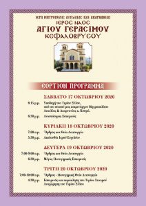 Στις 17 Οκτωβρίου 2020 ο Ιερός Ναός Αγίου Γερασίμου Κεφαλοβρύσου θα υποδεχτεί το Τίμιο Ξύλο εκ Τροβάτου Ευρυτανίας, το οποίο θα παραμείνει στον ναό μέχρι και τις 20 Οκτωβρίου 2020.