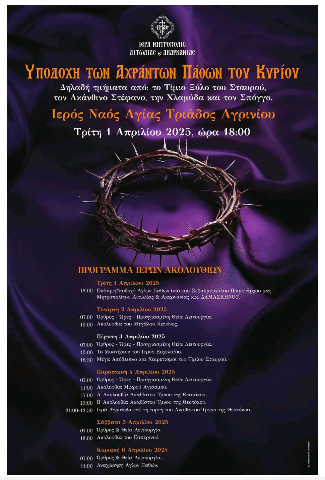Η Ιερά Μητρόπολη Αιτωλίας και Ακαρνανίας, στο πλαίσιο της ποιμαντικής μέριμνας για τον εκκλησιασμό και την εξυπηρέτηση των λατρευτικών αναγκών...