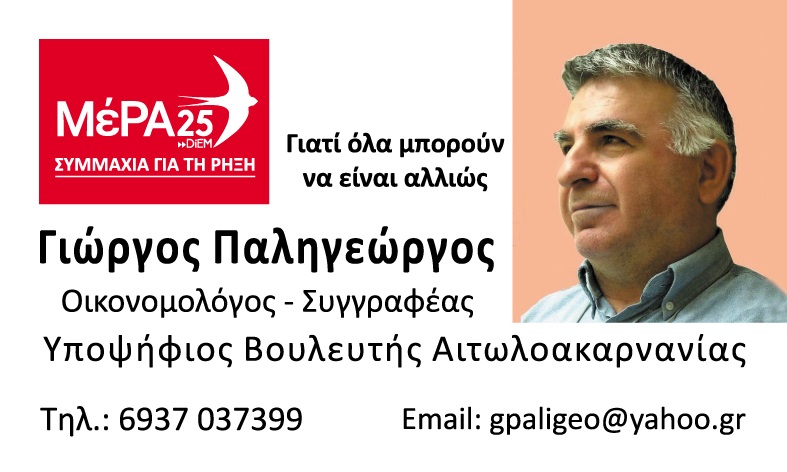 Υποψήφιος στην Αιτωλ/νία ο Γιώργος Παληγιώργος με ΜΕΡΑ 25-ΣΥΜΜΑΧΙΑ ΓΙΑ ΤΗ ΡΗΞΗ