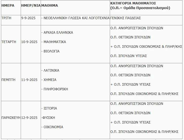 Α1. Πρόγραμμα επαναληπτικών πανελλαδικών εξετάσεων ημερήσιων και εσπερινών ΓΕΛ έτους 2025