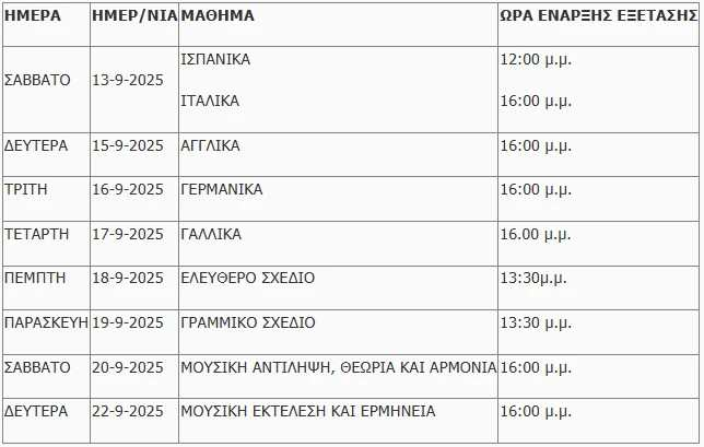 Β1. Πρόγραμμα επαναληπτικών πανελλαδικών εξετάσεων ειδικών & μουσικών μαθημάτων έτους 2025 για ΓΕΛ και ΕΠΑΛ